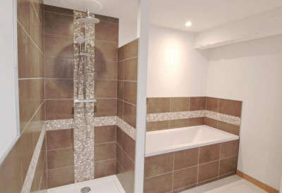UN APPARTEMENT DE TYPE 4 D'UNE SURFACE DE 89.60 M2 COMPRENANT UNE BELLE PIECE DE VIE OUVERTE SUR UNE CUISINE EQUIPEE, UN CELLIER, UN WC