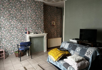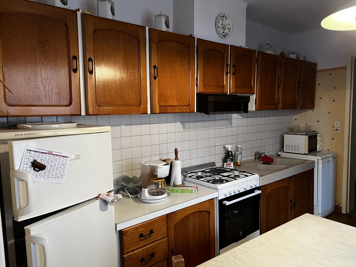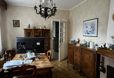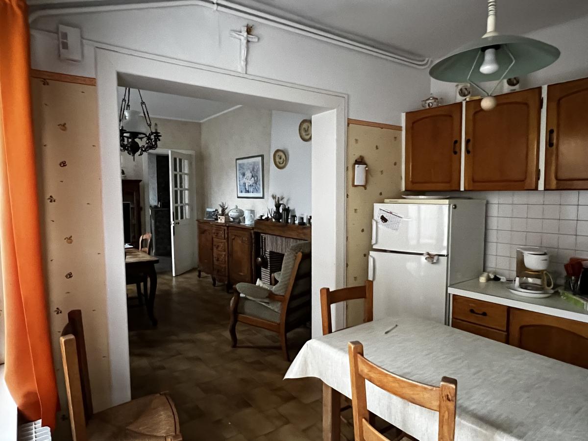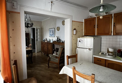 au rez-de-chaussée carrelé : salon, salle à manger, cuisine meublée, salle de bains et wc (tout à l'égoût)