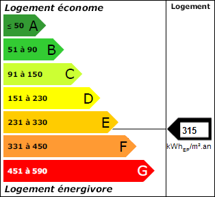 DPE E (315) GES E (59) estimation du coût de l'énergie entre 1 780€ et 2 470€