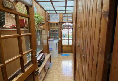 Elle est composée d'une entrée, d'un double séjour, d'une cuisine/salle à manger, d'une salle de douche avec wc et d'une véranda avec placard donnant accès à la cour et au garage.