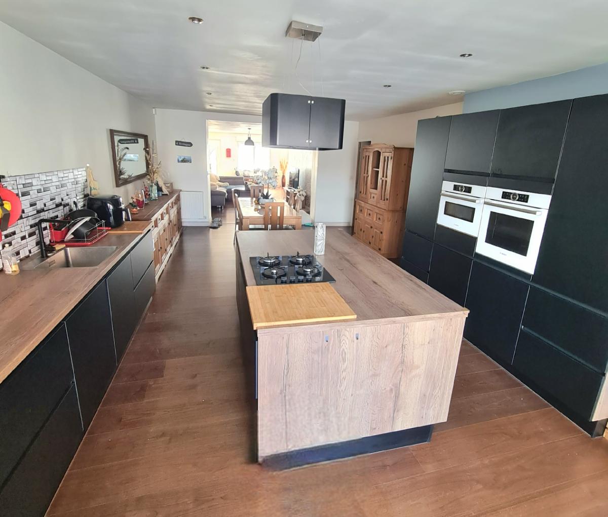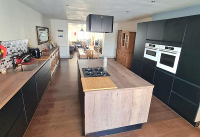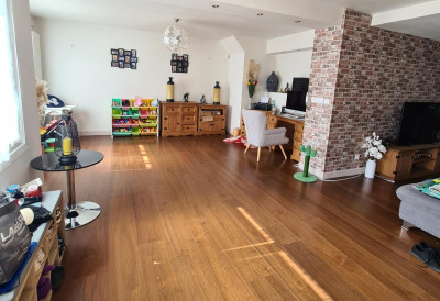 ARMENTIERES Venez découvrir cette maison une mitoyenneté en semi - plain pied rénové dans le quartier Léo Lagrange. Elle offre 152 m² de surface habitable dont 108 m² au rez-de-chaussée et elle comprend un vaste séjour - salon et salle à manger de 63 m², une grande cuisine équipée, une chambre (possible une deuxième au niveau du salon), un wc, une salle de bains complète (baignoire, douche à l'italienne, lavabo)et un espace buanderie. A l'étage : 2 chambres, un bureau, une salle de douche avec wc et un espace dressing. Une belle terrasse de 40 m² dont une place de parking. A 850 mètres de Carrefour, 1.2 kms du centre ville Armentières, 1 km de la frontière belge et à 2 kms de la gare. EN TRES BON ETAT !
