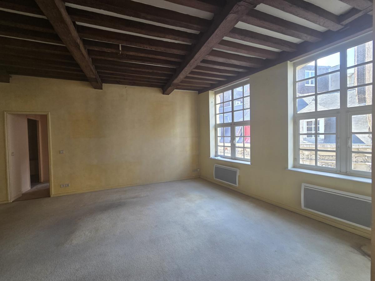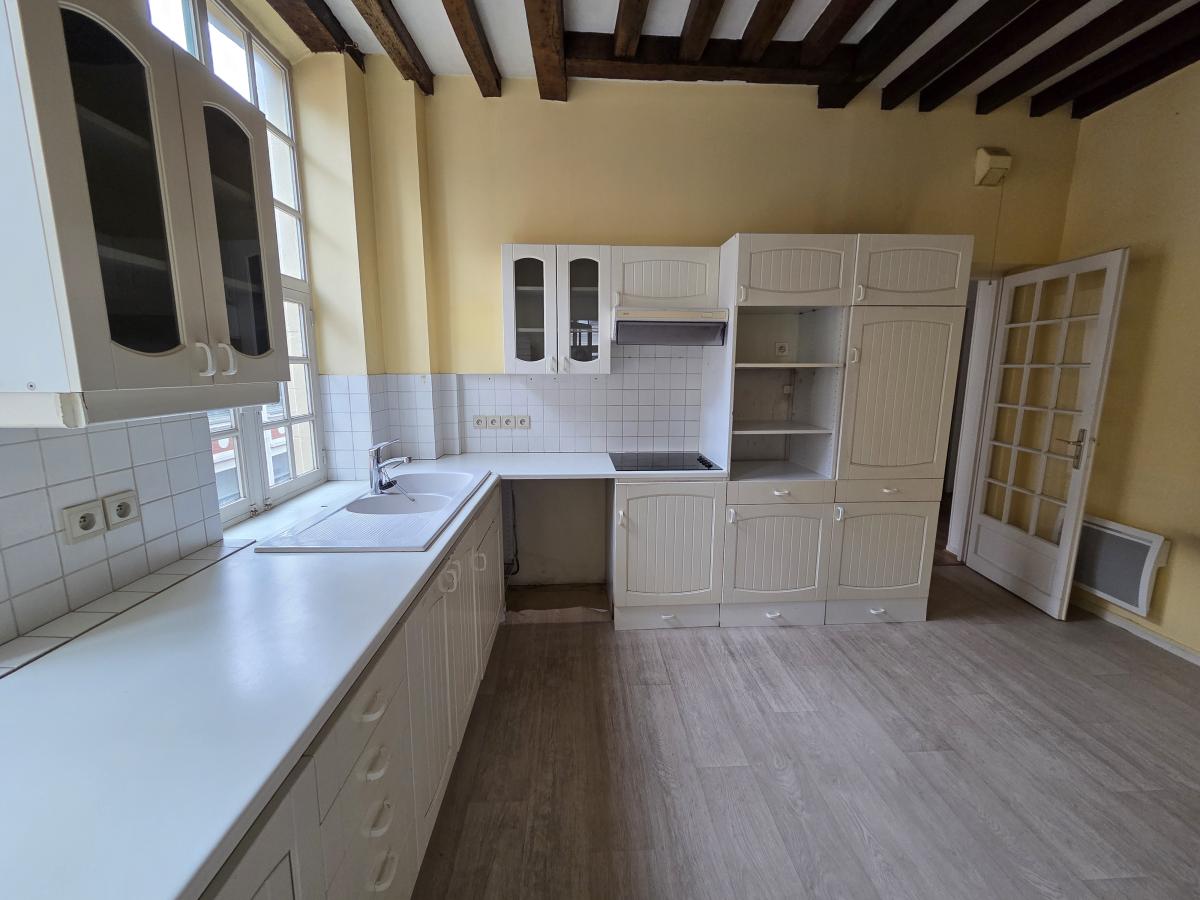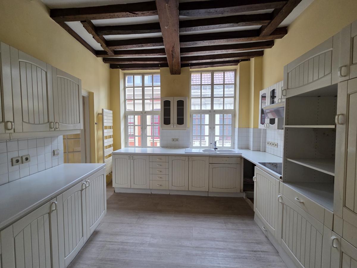 A VENDRE A LILLE, DANS UN SECTEUR EXCEPTIONNNEL, RUE DES 3 COURONNES AU COEUR DU VIEUX LILLE , A 2 PAS DES GARES un appartement dans un bel immeuble de caractère à rénover, situé au 3eme étage avec ascenseur. Il comprend une entrée, une pièce de vie de 30 m2 environ + 1 salle a manger de 17 m2 env. Jolies poutres au plafond. Une grande cuisine séparée, meublée, 2 chambres dont 1 avec salle de douche attenante + 1 salle de bains. 2 wc.
