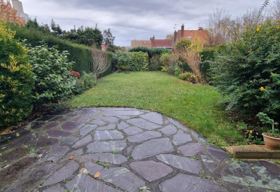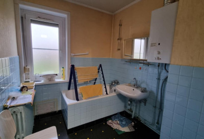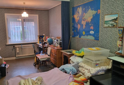 Maison des années 60/70 à rafraîchir, d'environ 95m², séjour sur jardin, 4 chambres, salle de bains à l'étage.