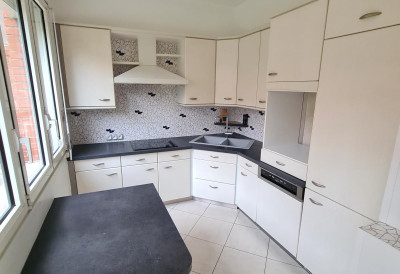 DUNKERQUE centre ville belle maison lumineuse avec jardin et garage située dans une rue calme et proche toutes commodités. Elle offre 145 m² de surface habitable : Une entrée, un séjour-salon avec bow window, une cuisine équipée, et un wc. Aux étages : 5 chambres dont une avec dressing, une salle de bains et une buanderie. Une cave saine de 35 m². Un garage et un stationnement devant garage. Terrasse avec jardin environ 100 m². IDEALEMENT SITUEE !