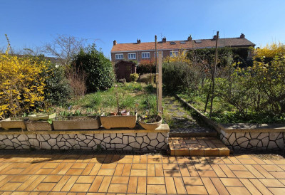 A VENDRE A FACHES THUMESNIL - QUARTIER DES CINQ BONNIERS Une maison de type Bâtir comprenant au rez de chaussée : Un hall d'entrée, une pièce de vie de 26 m2 env, une cuisine équipée séparée, wc.