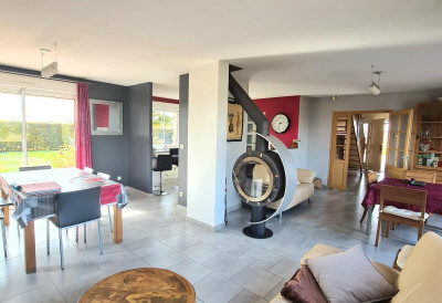 FRELINGHIEN proche Pérenchies Maison individuelle sur une parcelle de 1943 m². Elle dispose de 144 m² de surface habitable avec un garage et plusieurs stationnement. Beaux volumes et belles prestations pour cette maison construite en 2008. Au rez-de-chaussée : Hall d'entrée, wc, une chambre avec une salle de douche, un séjour-salon de 40 m² avec un poêle à bois, une cuisine équipée, un cellier/buanderie et un garage de 34 m². A l'étage : 4 chambres, un wc et une salle de bains. Jardin clos avec un petit bassin et 2 terrasses.