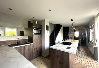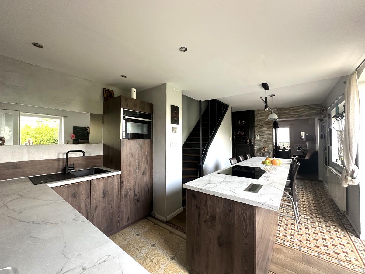 En vente à Haisnes, belle maison de village entièrement rénovée alliant charme de l'ancien et modernité de 90 m² habitable avec jardin et garage sur une parcelle d'environ 600 m². Elle se compose d'une entrée avec de grandes baies vitrées et parquet massif donnant sur la pièce de vie avec une cuisine équipée neuve, un salon avec poêle à pellet récent, un accès à une petite cave saine, une suite parentale avec sa salle de bains, un WC séparé. A l'étage, un grand palier avec placards utilisé comme bureau, une grande chambre, une deuxième salle de bains avec un meuble vasque, une douche à l'italienne et un WC. A l'extérieur une allée pour stationnement, un garage 1 véhicule, et à l'arrière deux belles terrasses en bois et un beau jardin arboré. Toutes les menuiseries sont récentes en PVC double vitrage avec volet roulant, chauffage central au gaz, toiture refaite et isolée en bac acier sur la partie extension, isolation dans la cave et dans les combles, relié au tout à l'égout.