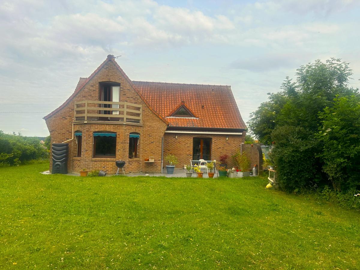 A vendre, dans le village d'Hantay dans les Weppes, dans un environnement calme et verdoyant, maison individuelle construite en 1998 d'une surface habitable de 148 m², implantée sur une parcelle de 1040 m². Elle est composée d'un vaste hall d'entrée avec un escalier en marbre pour accéder à l'étage, un grand salon séjour d'une surface de 45 m² lumineux donnant sur le jardin exposé sud-ouest, avec cheminée feux de bois avec insert, une cuisine équipée ouverte avec un îlot central, une buanderie, un WC et un coin vestiaire, une suite parentale avec sa salle d'eau. A l'étage, un grand palier, 3 belles chambres, une salle de bains et un WC séparé. La maison dispose d'une terrasse et d'un jardin arboré, un sous-sol complet, un chauffage central au gaz, un adoucisseur. Maison en très bon état d'entretien, de bonne construction et avec des matériaux de qualité dans un beau cadre de vie.