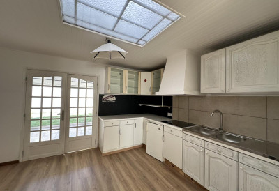 A vendre sur la commune d'Haubourdin, charmante maison des années 50 entièrement rénovée d'environ 74 m² habitable, bâtie sur une parcelle d'environ 160 m², comprenant un hall d'entrée, salon/séjour, cuisine équipée ouverte sur le séjour, salle de bains avec WC, véranda avec baies vitrées donnant sur le jardin, une cave et un garage à motos/vélos. A l'étage 2 chambres dont une grande avec placards intégrés. Chauffage central au gaz, chaudière neuve, installation électrique neuve, fenêtres double vitrage en PVC avec volet électrique, tout à l'égout. Idéalement située dans rue calme, à proximité des écoles et commerces.