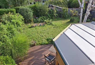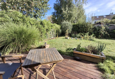 UN JARDIN devant + aire de stationnement pour 2 voitures et un Agréable JARDIN à l'arrière clos et planté.