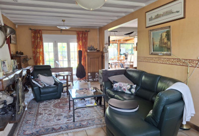 Au RDC: Un hall d'entrée avec vestiaire et wc , Un SALON SEJOUR traversant de 36m² donnant sur une vaste Cuisine très lumineuse de 18m². Un BUREAU (ou chambre) de 9,7m² - 1 Cellier -