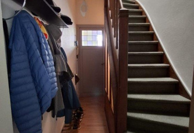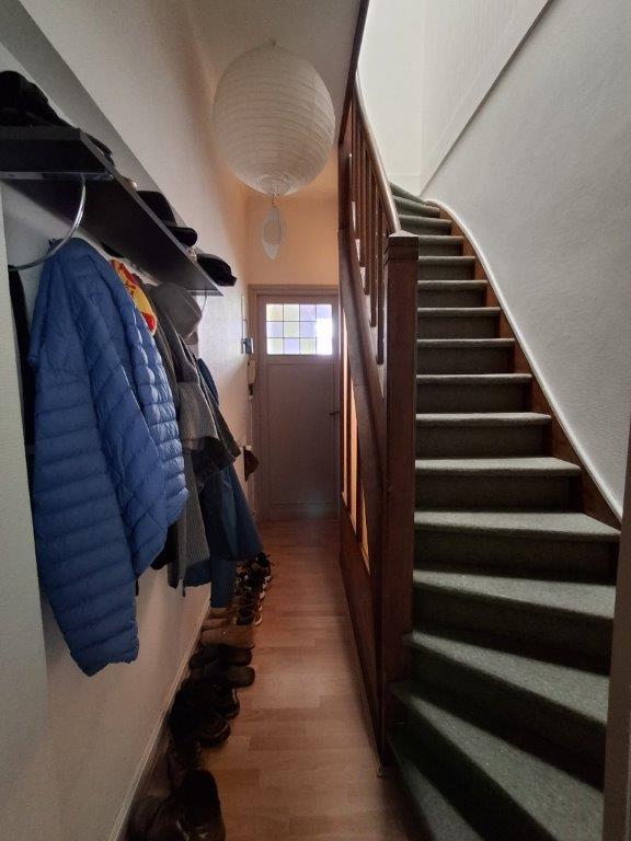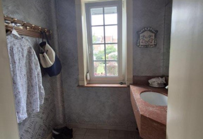 Cet appartement est composé au 1er étage d'un hall d'entrée , d'un séjour , d'une cuisine, et WC et au deuxième niveau d'un palier, 2 chambres , bureau et salle de bains. Les menuiseries sont en double vitrage et l'appt est équipé du chauffage central au gaz.