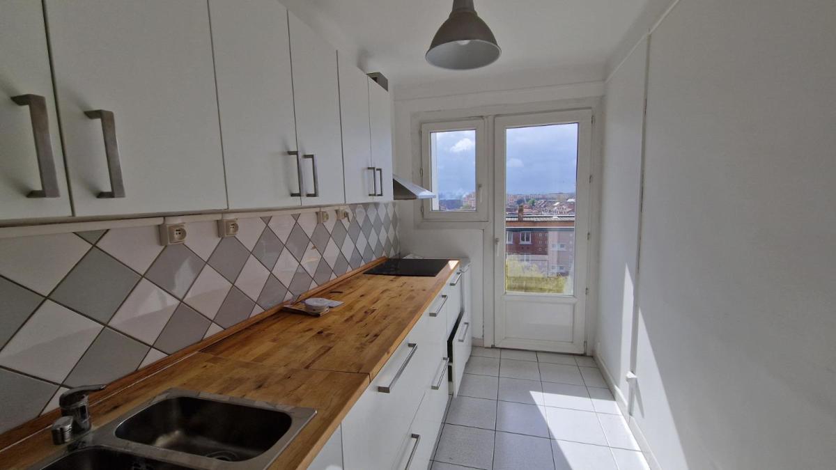A VENDRE A LILLE A 5 MINUTES A PIED DU METRO BOIS BLANCS - PLACE CLEMENT ADER - UN APPARTEMENT DE 61 M2 ENVIRON SITUE AU 6EME ETAGE AVEC ASCENSEUR COMPRENANT UN HALL D'ENTREE, UNE PIÈCE DE VIE TRÈS LUMINEUSE AVEC BAIE VITRÉE SUR BALCON, CUISINE EQUIPEE RECENTE, 2 CHAMBRES + BUREAU -SALLE DE DOUCHE ET WC SÉPARÉS - TRES JOLIE VUE DEGAGEE - NOMBREUX PLACARDS - CAVE - POSSIBILITÉ DE SE GARER SUR LE PARKING DE LA RÉSIDENCE - FENETRES PVC DOUBLE VITRAGE -