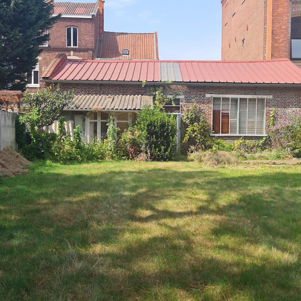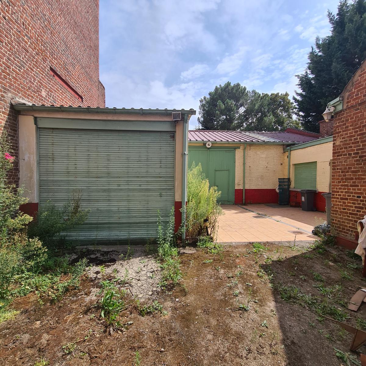 LOOS Ensemble immobilier comprenant une maison, un garage, un hangar et un jardin sur une parcelle de 640 m². La maison avec une mitoyenneté à rénover mesure 105m² de surface habitable hors grenier aménageable de 35 m² au sol. Chaudière gaz 2024. TAE ok. Une cave. Le hangar mesure 95 m² et le garage 20 m². Portail électrique avec large passage. Jardin mesure environ 320 m². Idéal tout corps de métiers (artisans ou libéraux) ou investissement pour du locatif. 2.5 kms CHR LILLE. 450 mètres des commerces. 150 mètres bus.