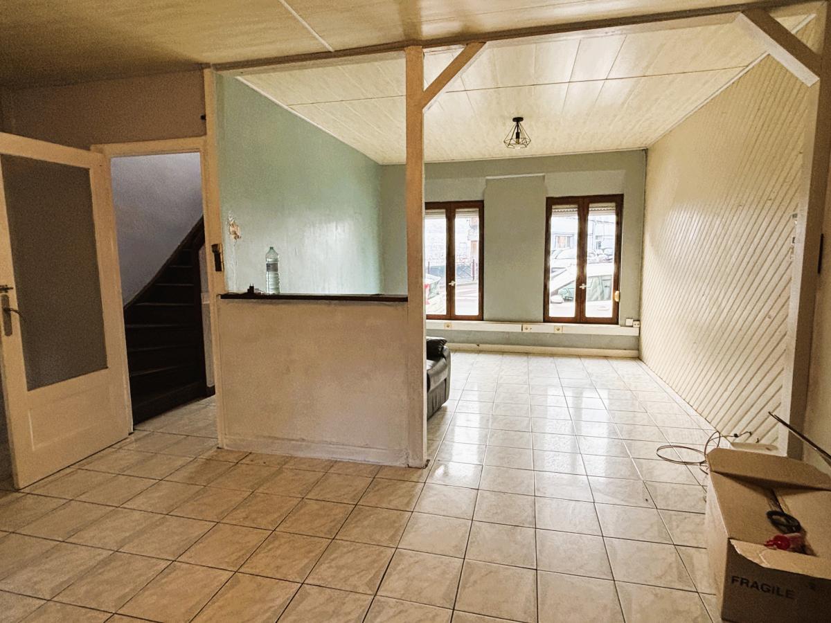 Maison d'une surface d'environ 85 m² comprenant un séjour de 28 ², une cuisine équipée ouverte, wc, 2 chambres possibilité 3 et une salle de bains.