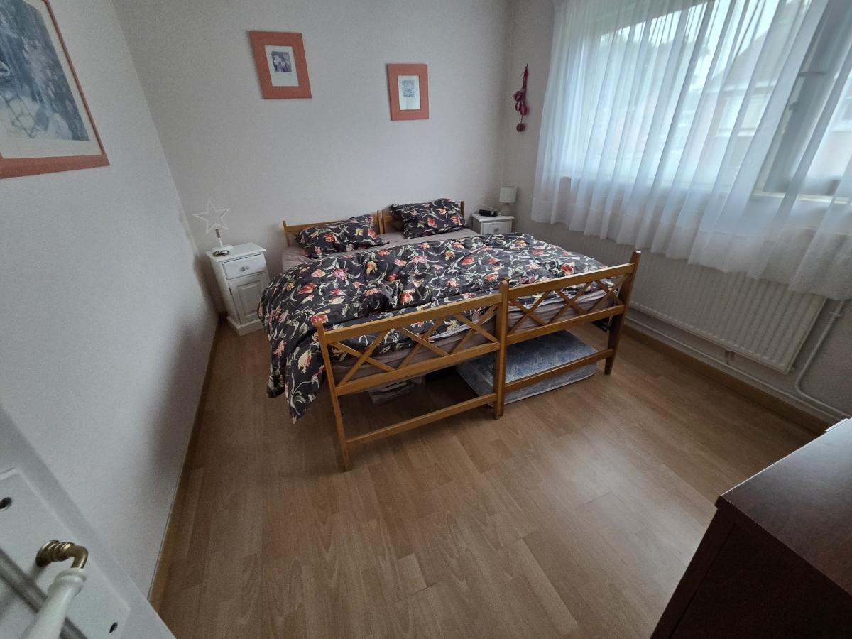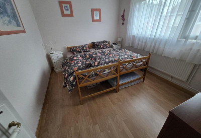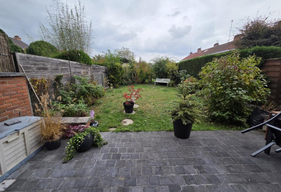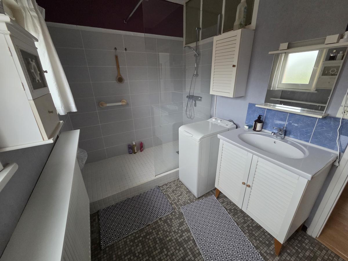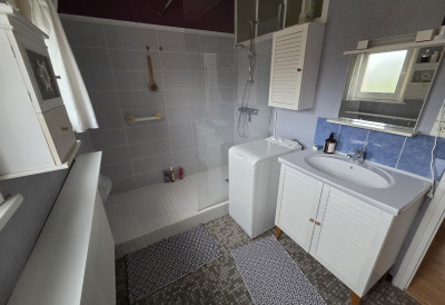 A l'étage, 3 chambres avec parquet flottant, 1 salle de douche actuelle, un grand placard sur le palier. Une cave, un jardin clos bien orienté avec une jolie terrasse en pierre bleue.