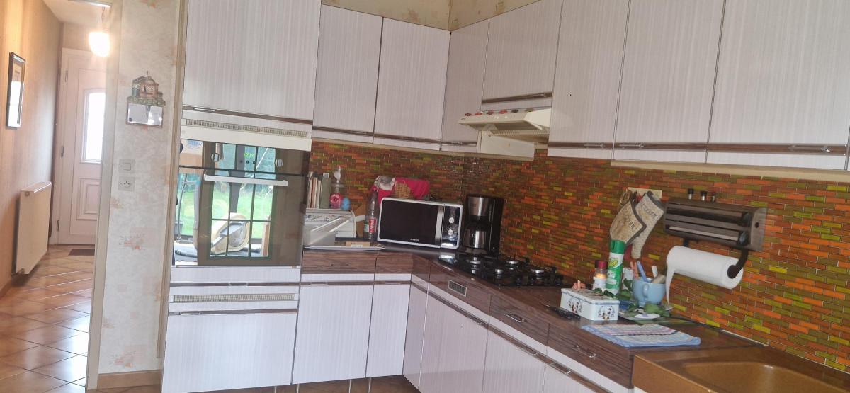 Elle est composée au RDC, d'un hall, d'un salon salle à manger, d'une cuisine équipée, d'un cellier, une véranda et un wc.