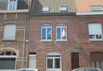 Maison à louer située à Quesnoy-sur-Deûle, d'une surface de 84 m². Ce logement comprend séjour/salle à manger de 22 m², une cuisine meublée séparée, WC.