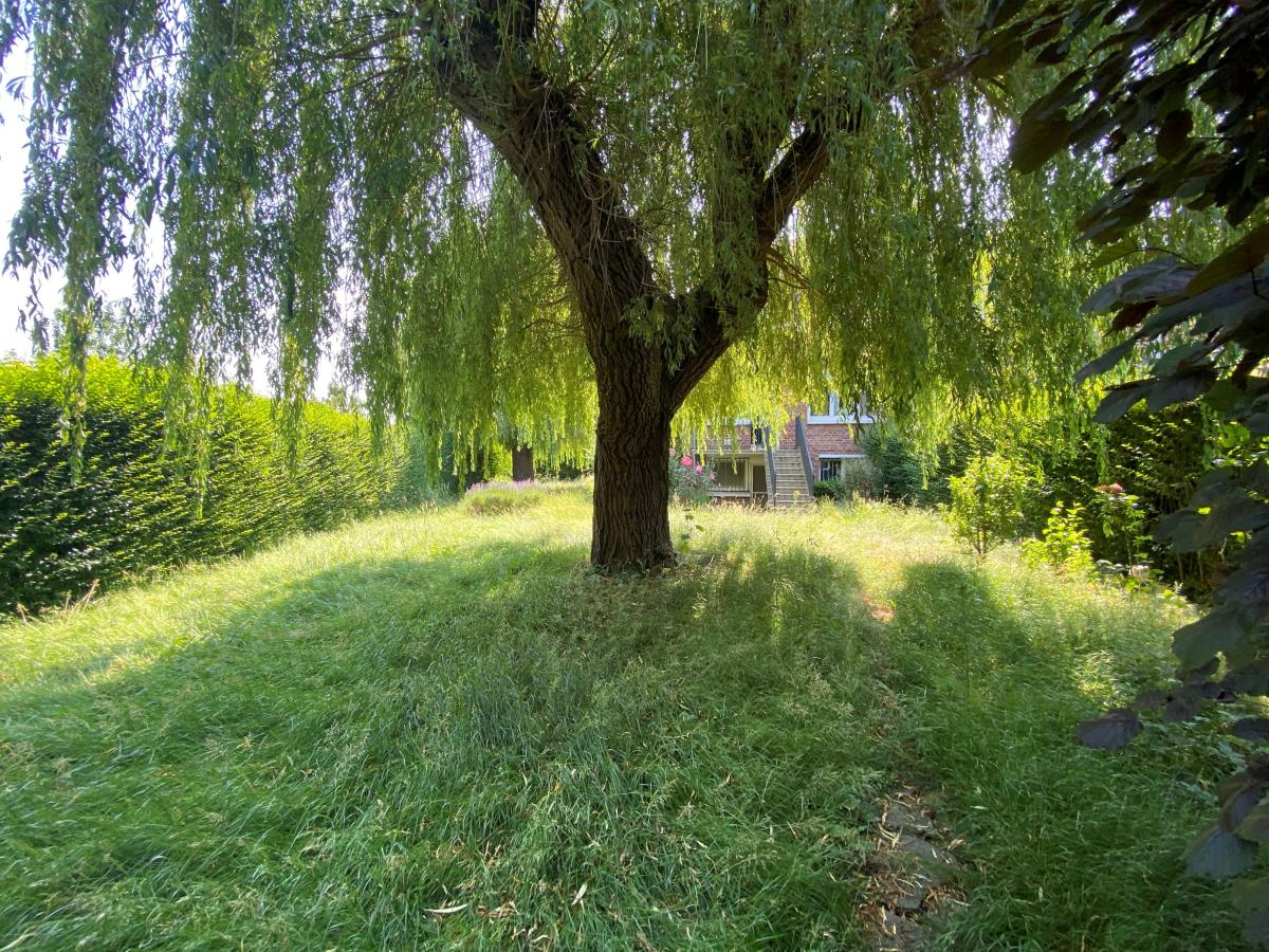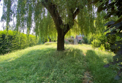 Grand terrain d'une surface d'environ 550 m² et un second garage au fond du jardin.