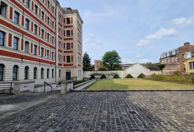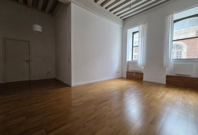A VENDRE DANS LE VIEUX LILLE RUE ROYALE - DANS UNE SUPERBE COPROPRIETE PLEINE DE CHARME, UN APPARTEMENT AU CACHET ATYPIQUE SITUE AU 1ER ETAGE AVEC ASCENSEUR. IL COMPREND UN HALL D'ENTREE AVEC PLACARD, SEJOUR DE 27 M2 AVEC MUR EN PIERRE, PLAFOND AVEC POUTRES, CUISINE EQUIPEE SEMI OUVERTE SUR LE SEJOUR, UN DEGAGEMENT AVEC PLACARDS MENE AUX 2 CHAMBRES, DRESSING, SALLE DE BAINS ET WC SUSPENDUS SEPARES. APPARTEMENT AU CALME - UNE PLACE DE PARKING EN SOUS SOL - . TOUS LES SOLS SONT PARQUETES - CHAUFFAGE ELECTRIQUE + CUMULUS -